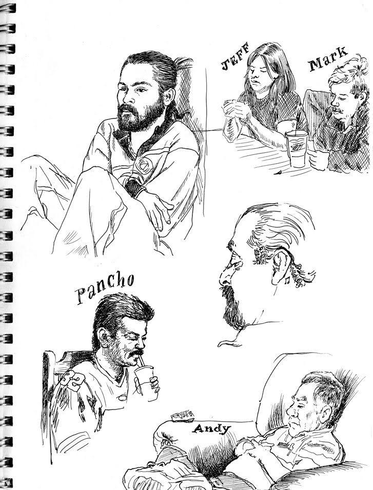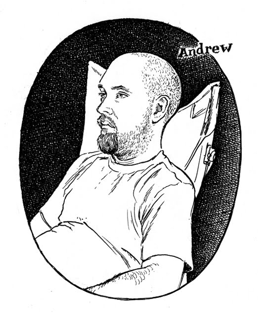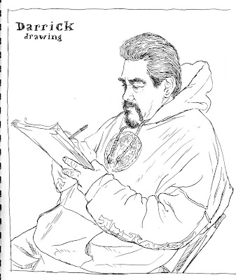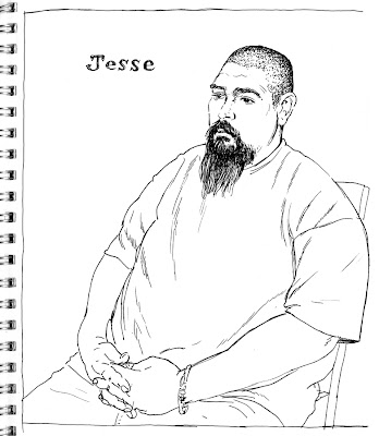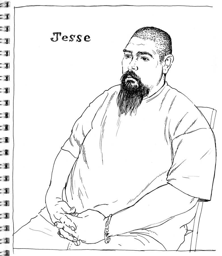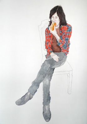 Simulacrum, graphite, 18" x 27"Self-Portrait w/ Hot Dog, watercolor & graphite, 36" x 46"Portrait of an American Soldier, watercolor, 30" x 42"